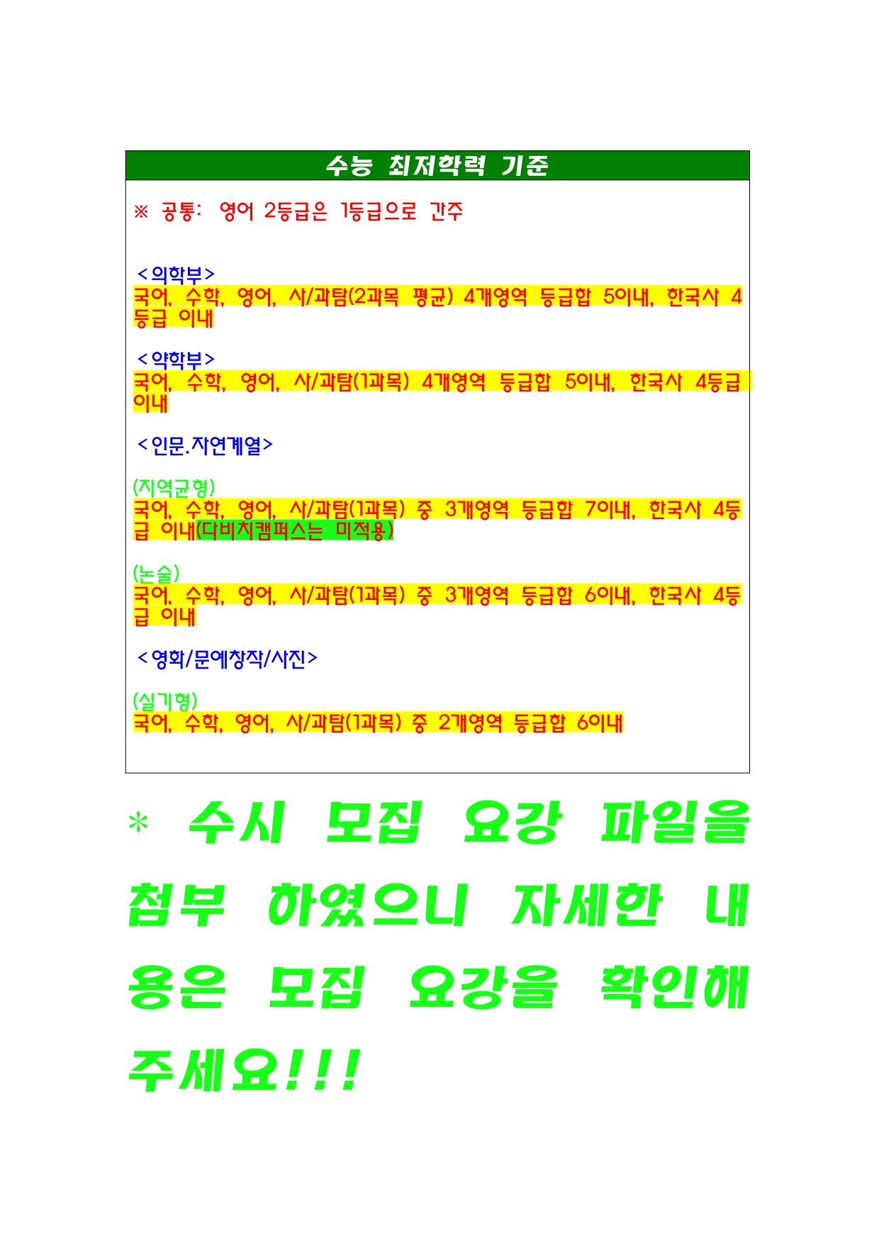 각종 입시 자료를 확인할 수 있습니다.